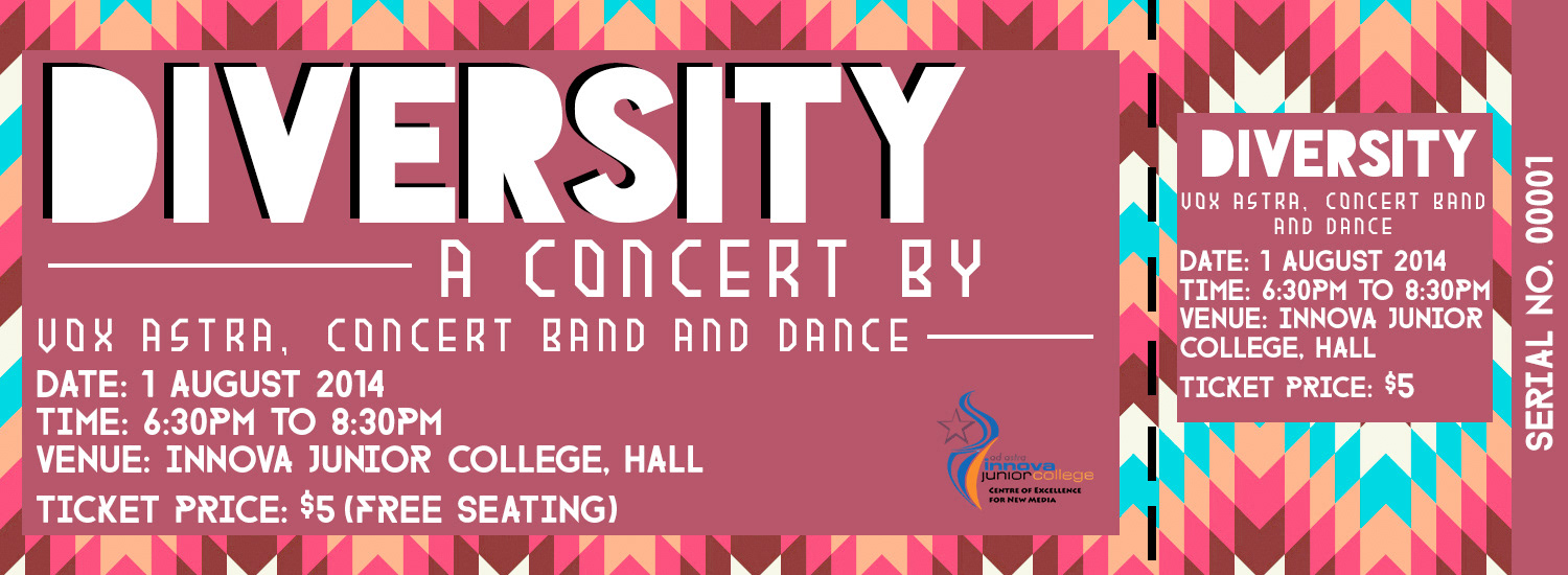 Concert ticket for Diversity by Innova Junior College's Performing Arts designed by Dhya